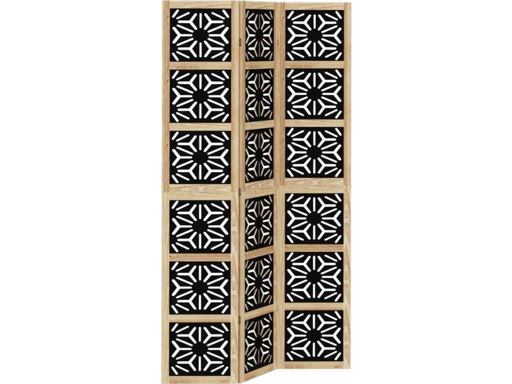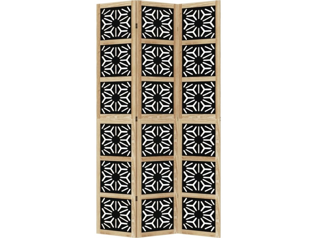 Paraván 3dílný hnědý a černý masivní dřevo pavlovnie [358799]