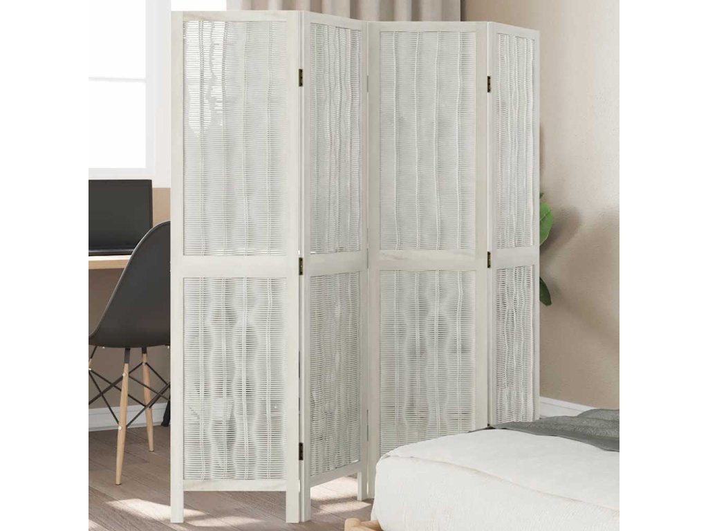 Paraván 4dílný bílý masivní dřevo pavlovnie [358673]