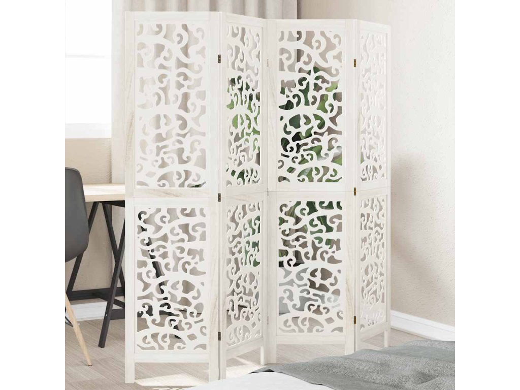 Paraván 4dílný bílý masivní dřevo pavlovnie [358737]