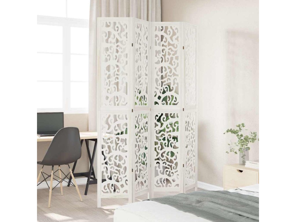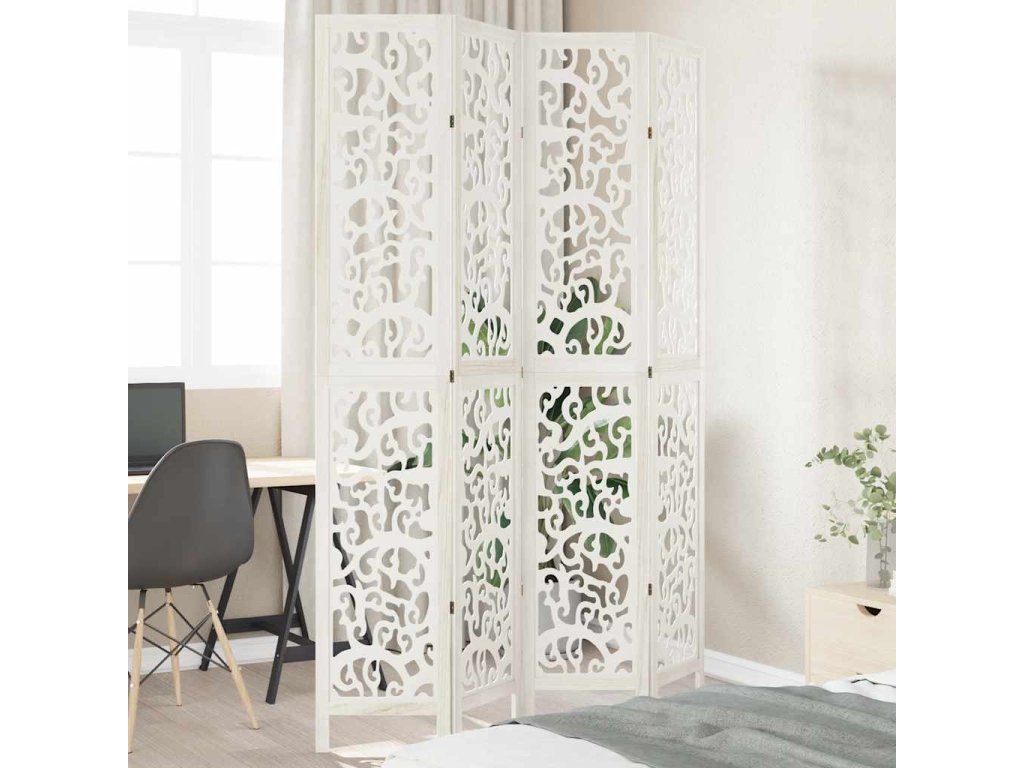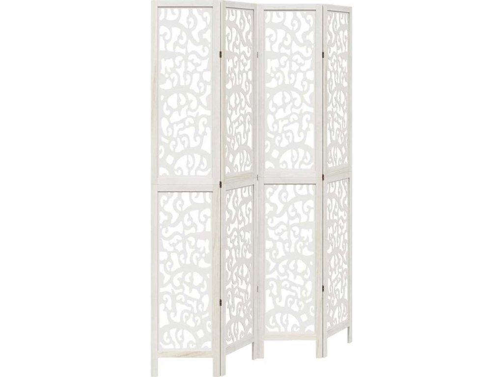 Paraván 4dílný bílý masivní dřevo pavlovnie [358740]