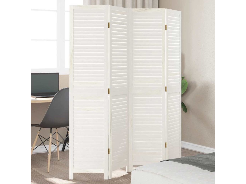 Paraván 4dílný bílý masivní dřevo pavlovnie [358834]