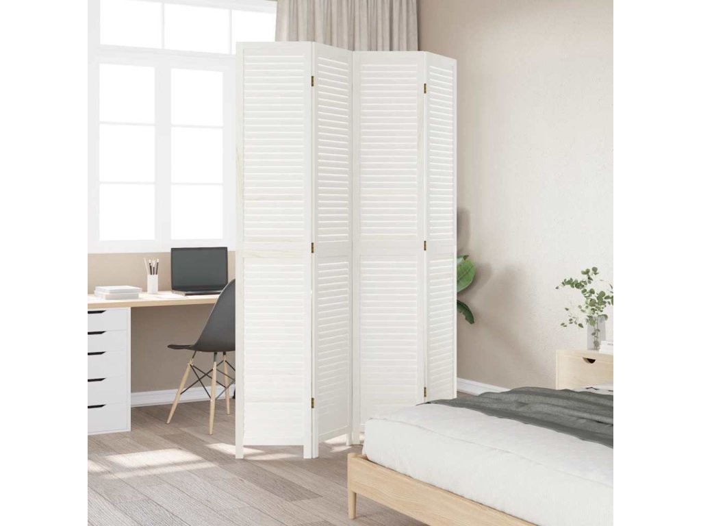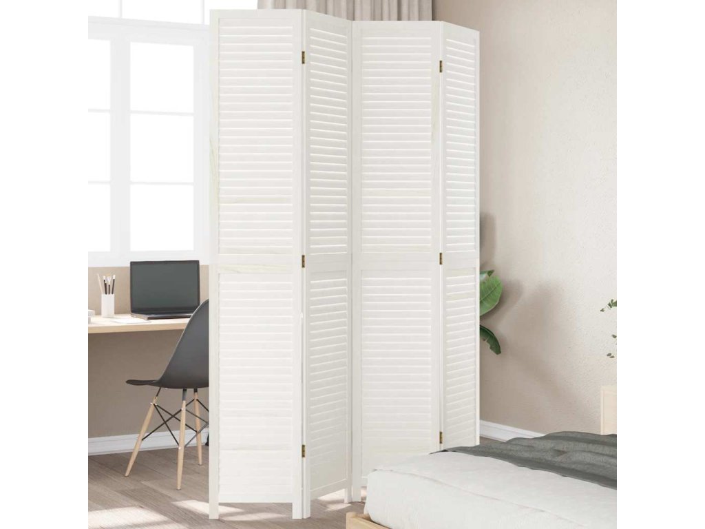 Paraván 4dílný bílý masivní dřevo pavlovnie [358836]