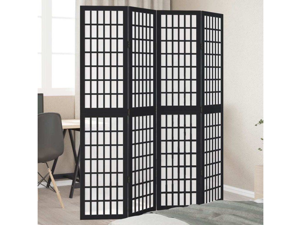 Paraván 4dílný černý masivní dřevo pavlovnie [358770]