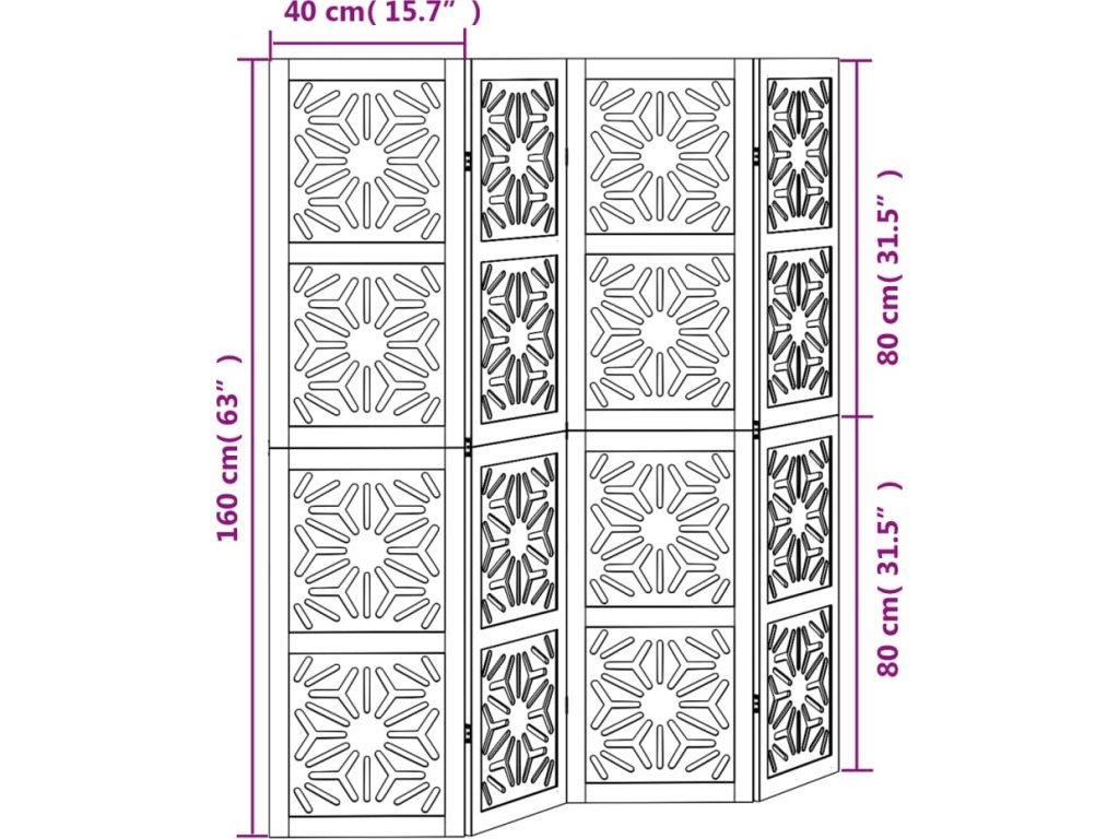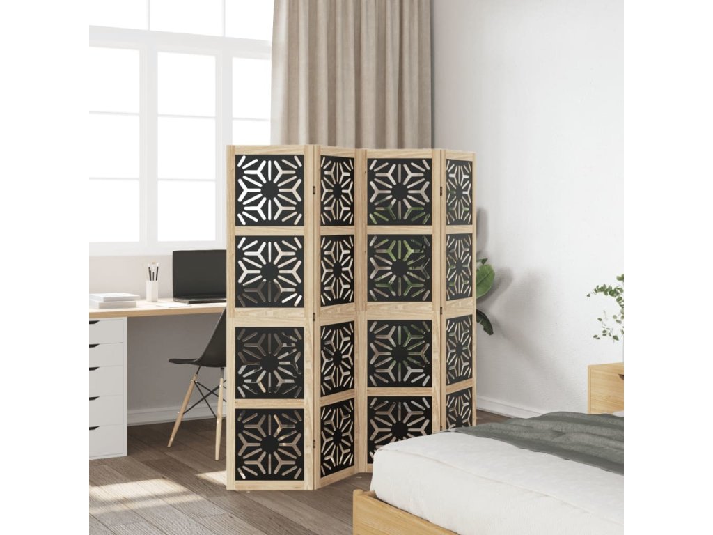 Paraván 4dílný hnědý a černý masivní dřevo pavlovnie [358801]