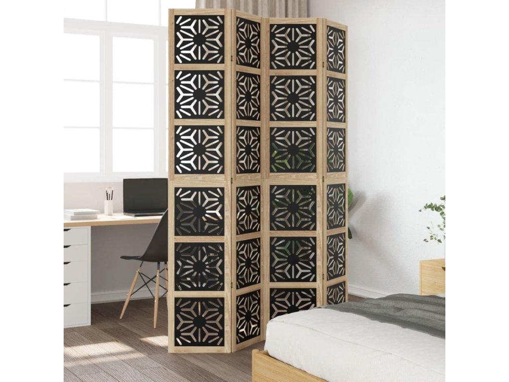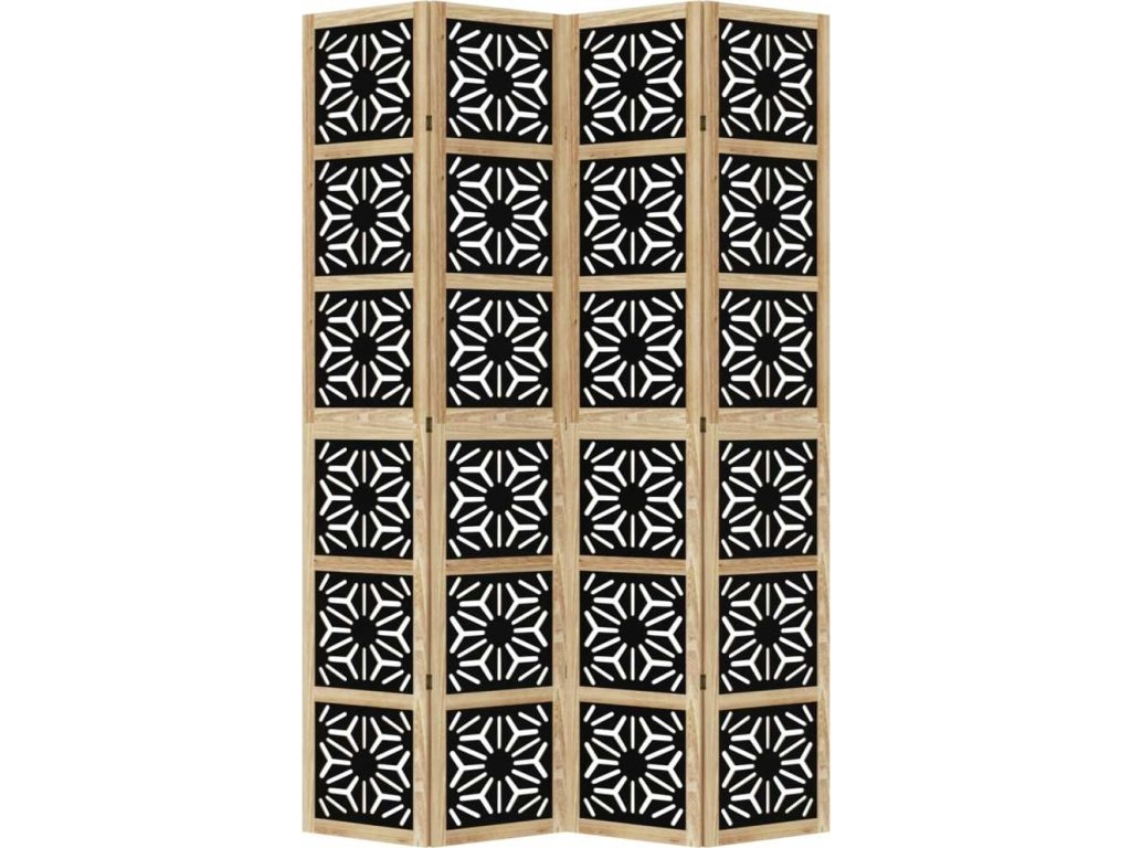Paraván 4dílný hnědý a černý masivní dřevo pavlovnie [358804]