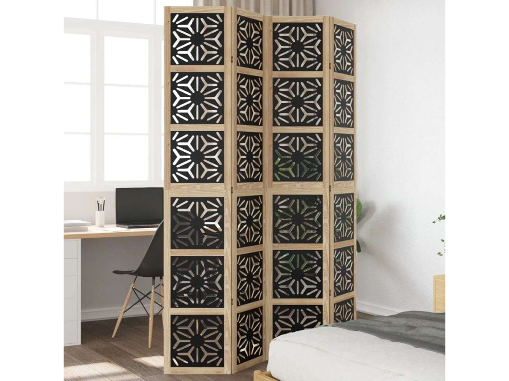 - Atraktivní vzhled: Tento skládací paraván s geometrickým výřezem dodává prostoru charakter a dekoraci.