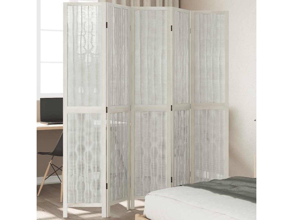 Paraván 5dílný bílý masivní dřevo pavlovnie [358679]