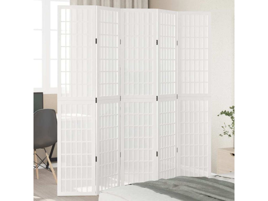 Paraván 5dílný bílý masivní dřevo pavlovnie [358791]