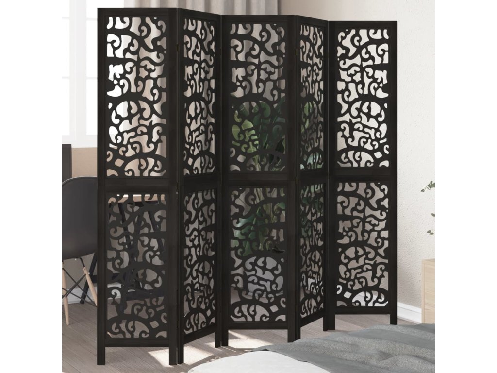 Paraván 5dílný černý masivní dřevo pavlovnie [358758]