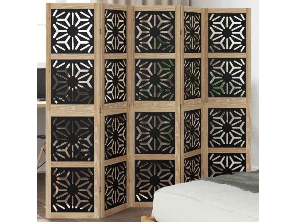 Paraván 5dílný hnědý a černý masivní dřevo pavlovnie [358805]