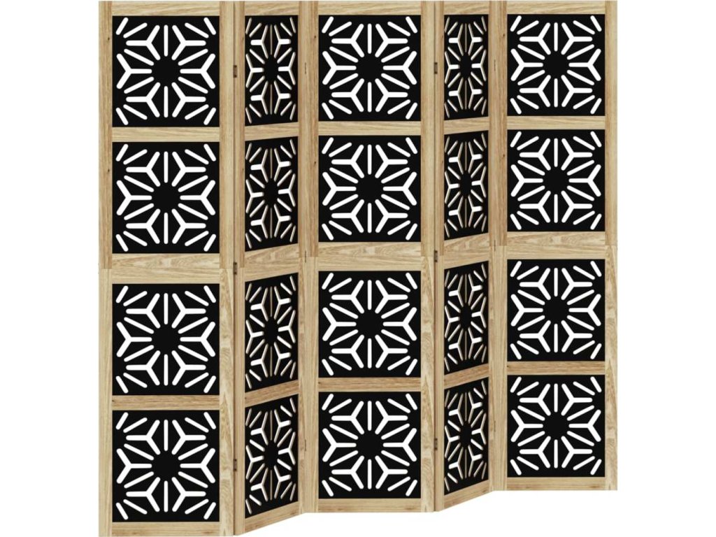 - Atraktivní vzhled: Tento skládací paraván s geometrickým výřezem dodává prostoru charakter a dekoraci.