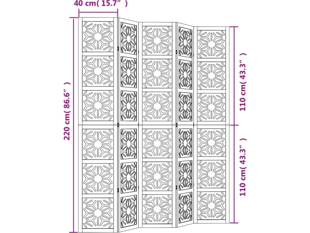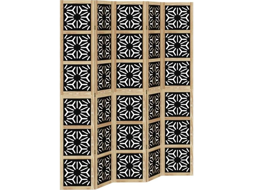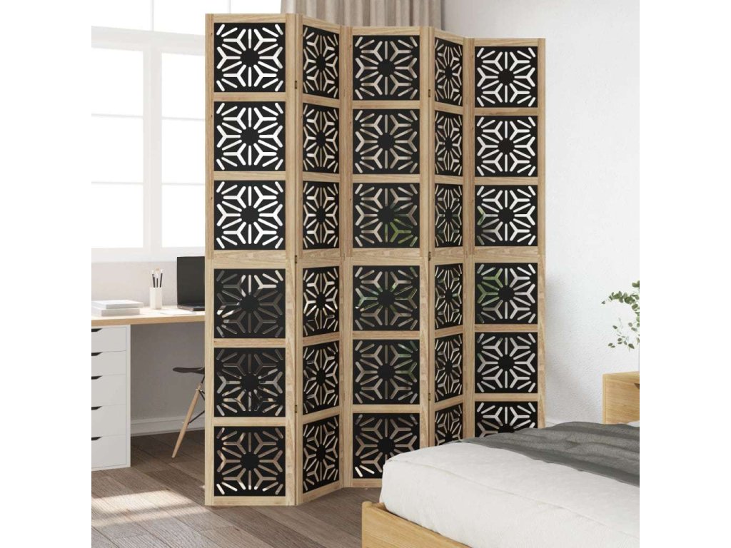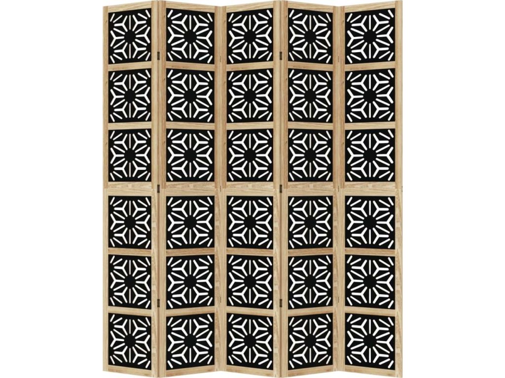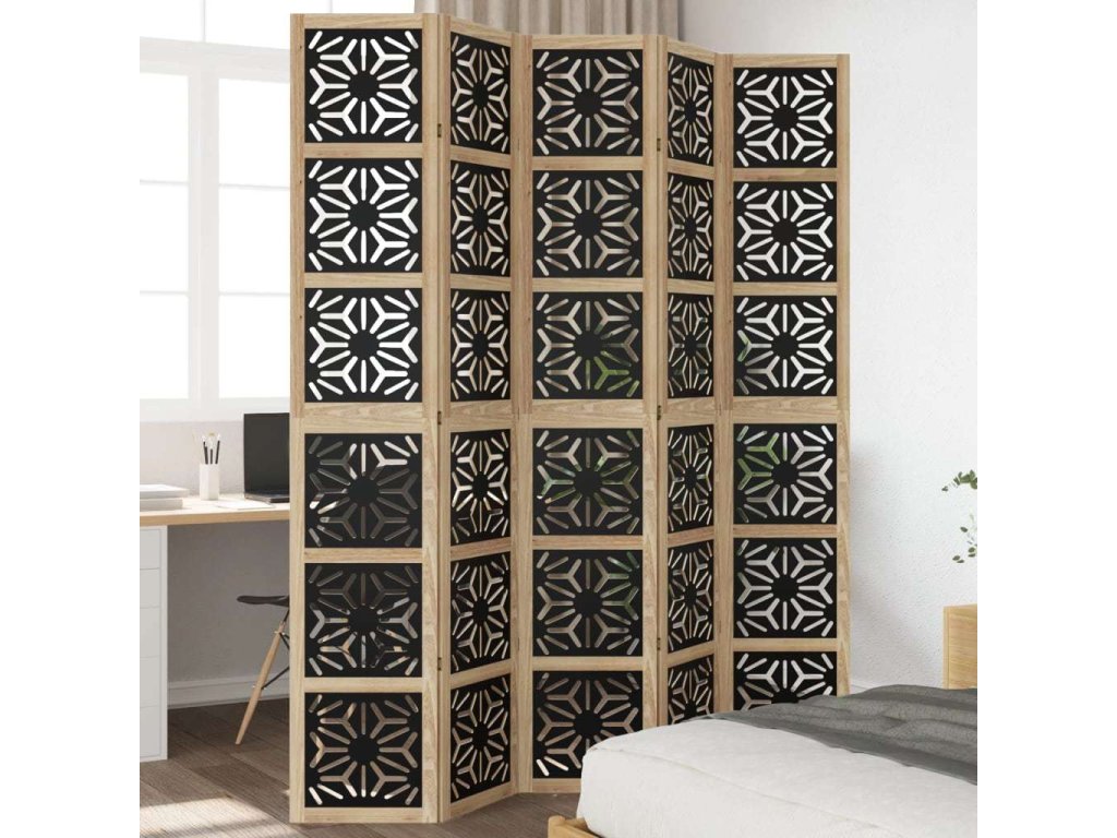 Paraván 5dílný hnědý a černý masivní dřevo pavlovnie [358808]