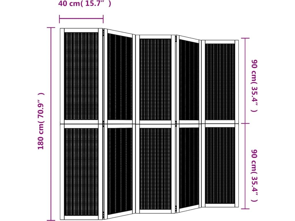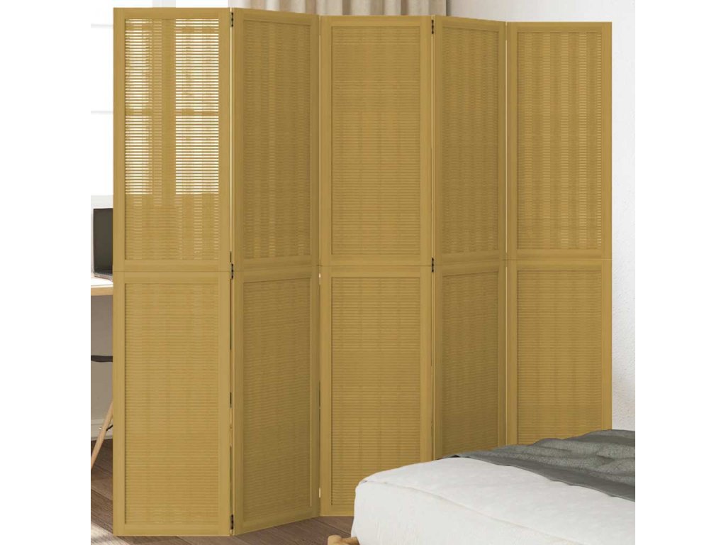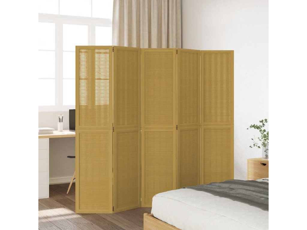 Paraván 5dílný hnědý masivní dřevo pavlovnie [358822]