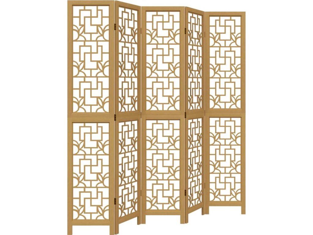 Paraván 5dílný hnědý masivní dřevo pavlovnie [358871]