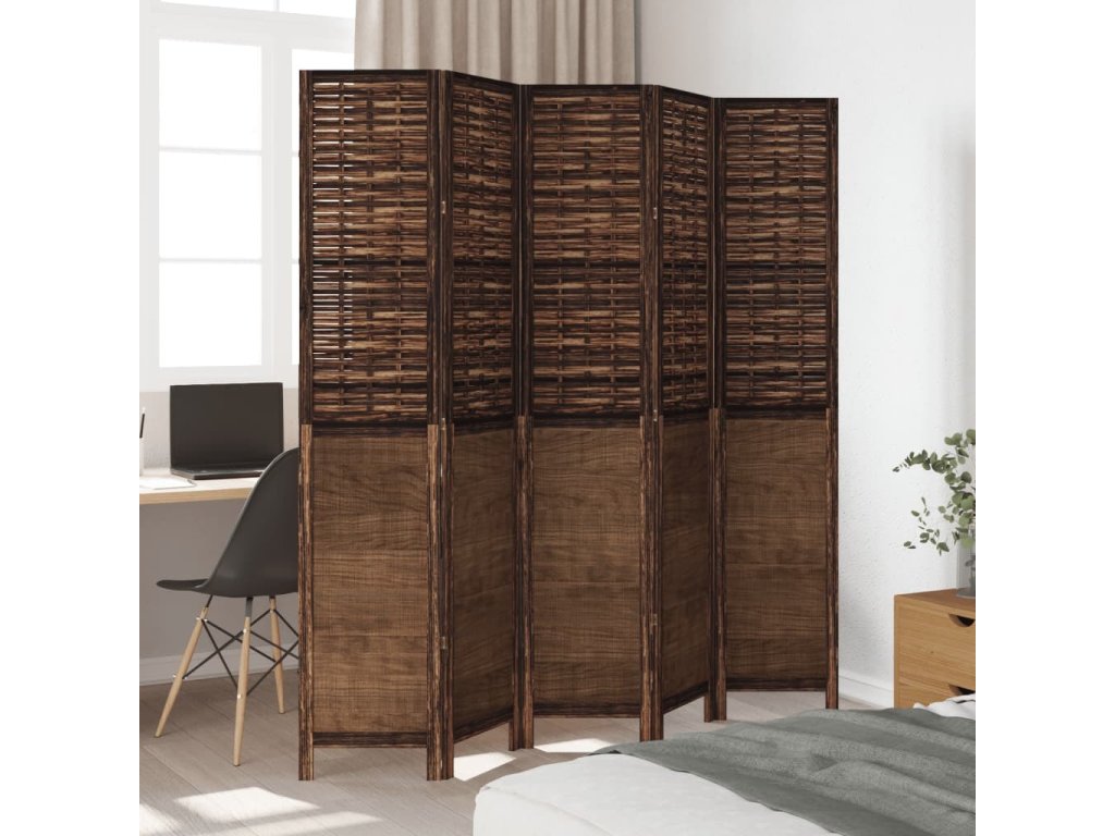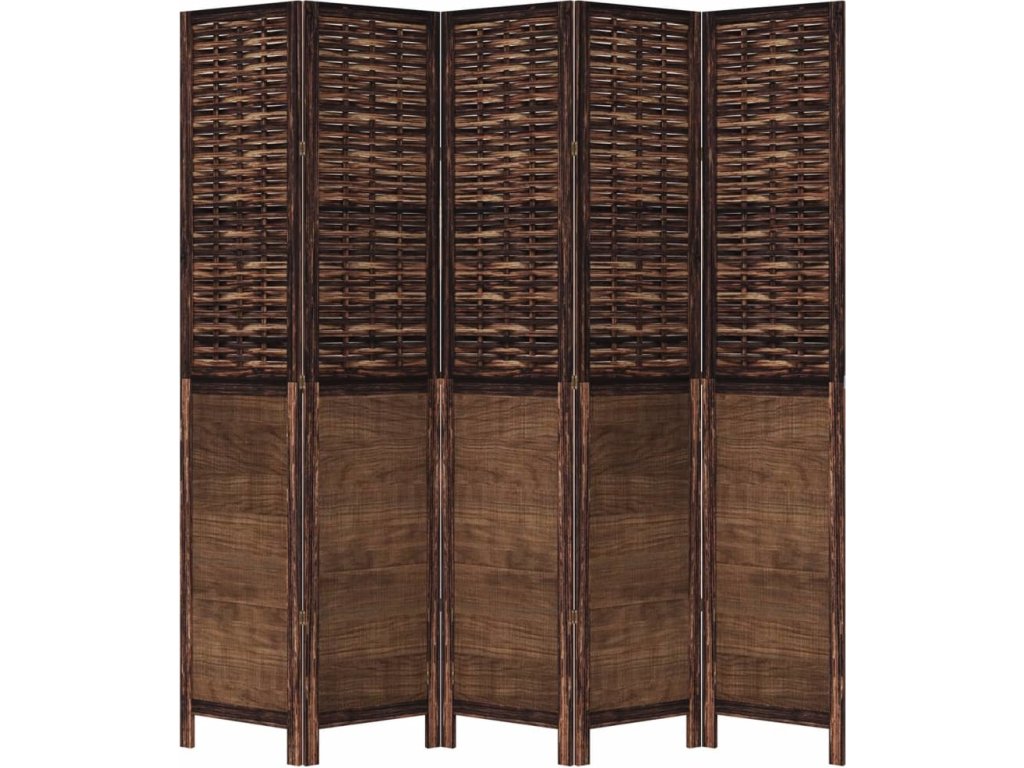 Paraván 5dílný tmavě hnědý masivní dřevo pavlovnie [358711]