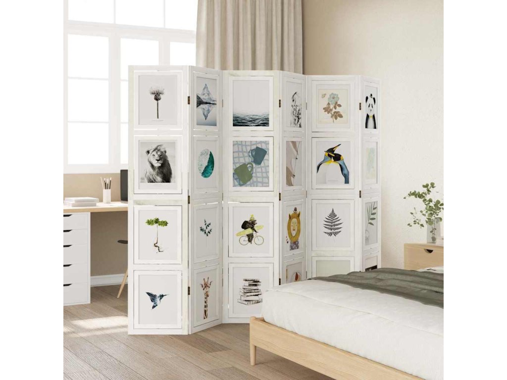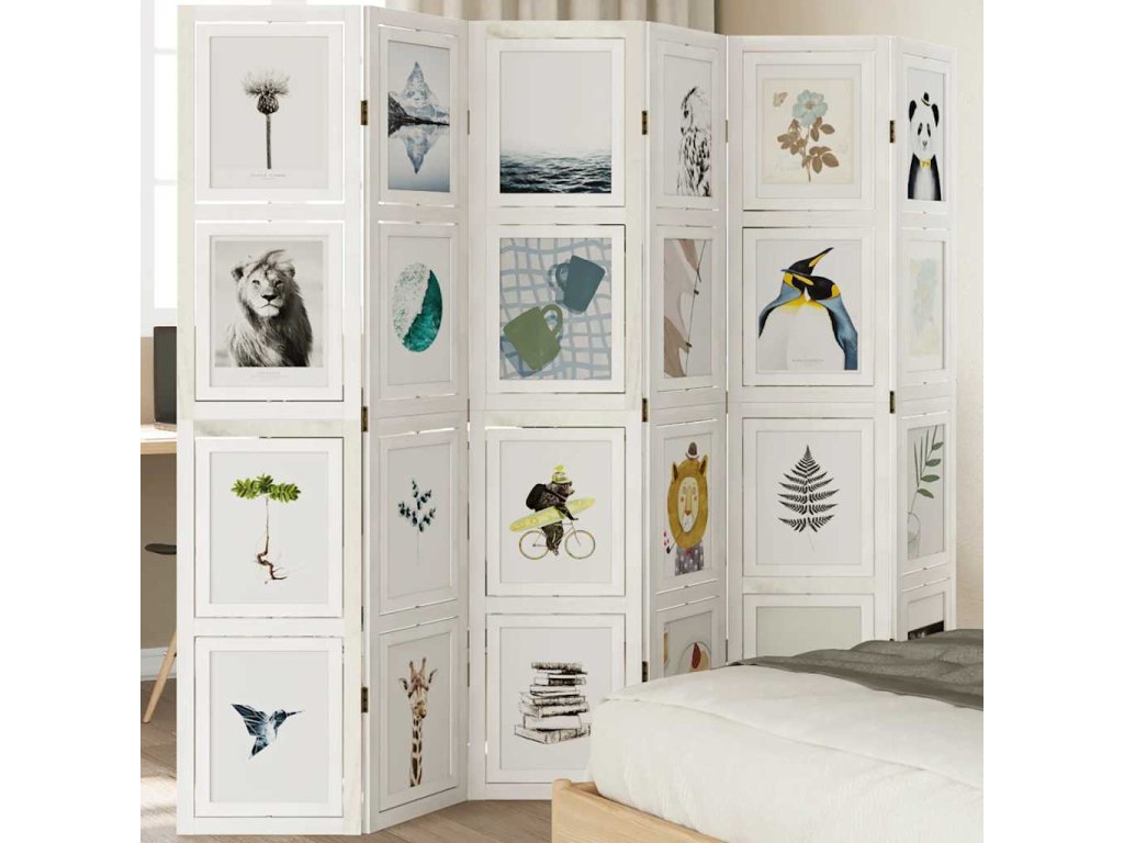 Paraván 6dílný bílý masivní dřevo pavlovnie [358698]