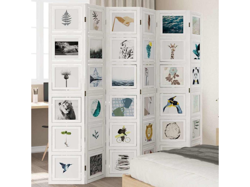 Paraván 6dílný bílý masivní dřevo pavlovnie [358699]