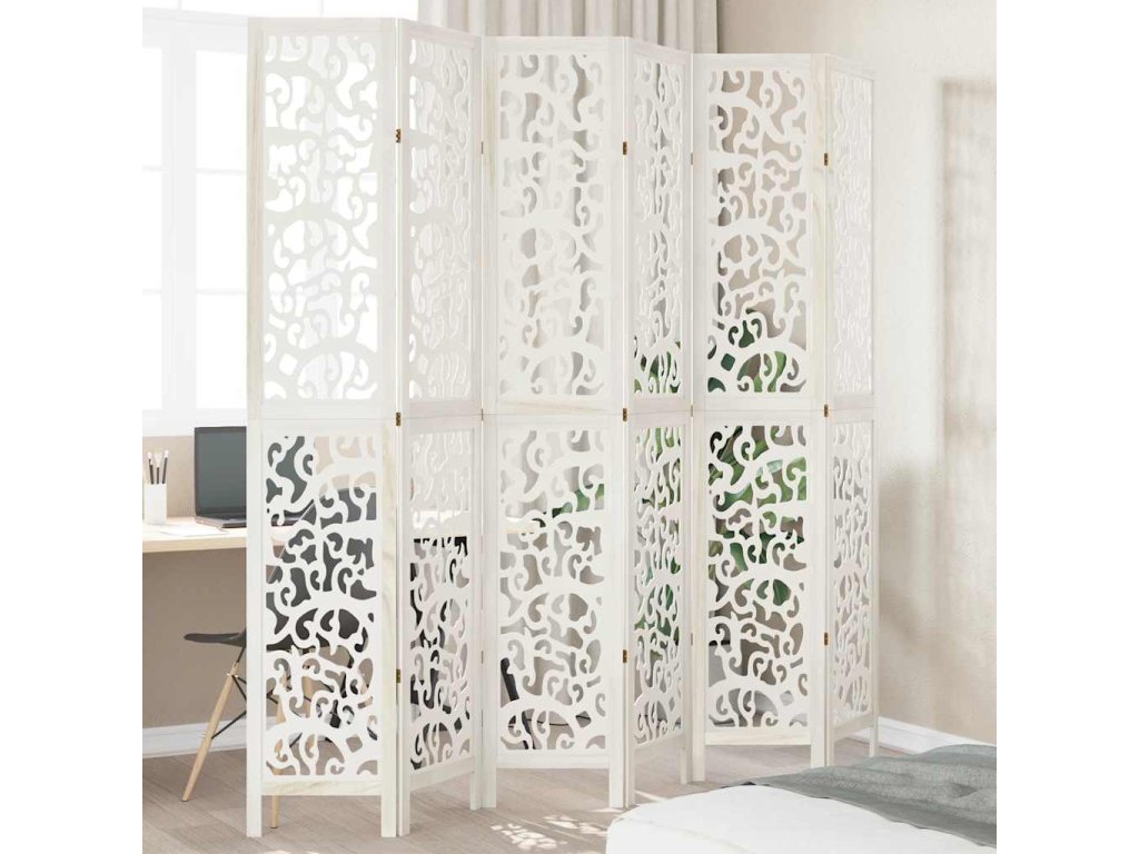 Paraván 6dílný bílý masivní dřevo pavlovnie [358748]