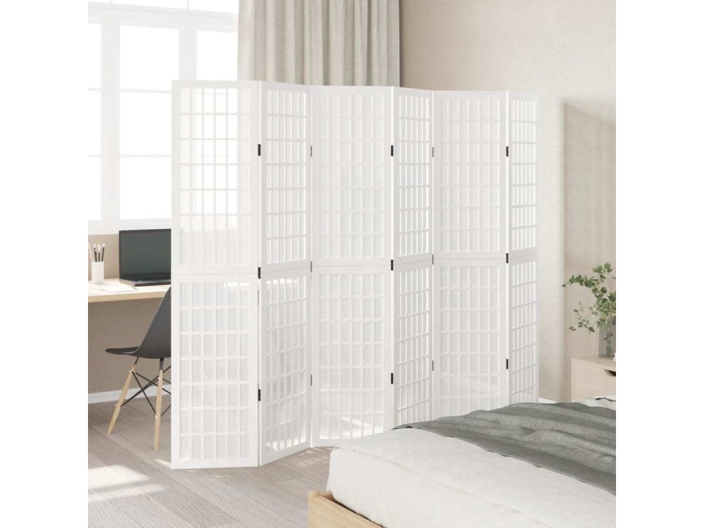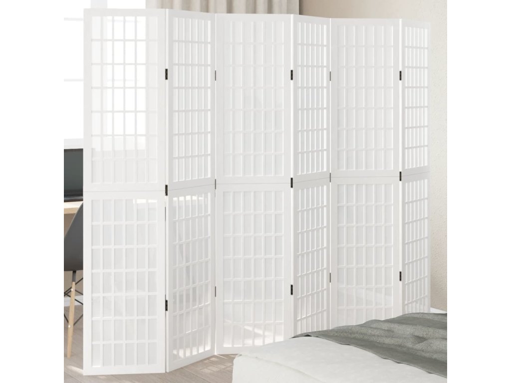 Paraván 6dílný bílý masivní dřevo pavlovnie [358794]
