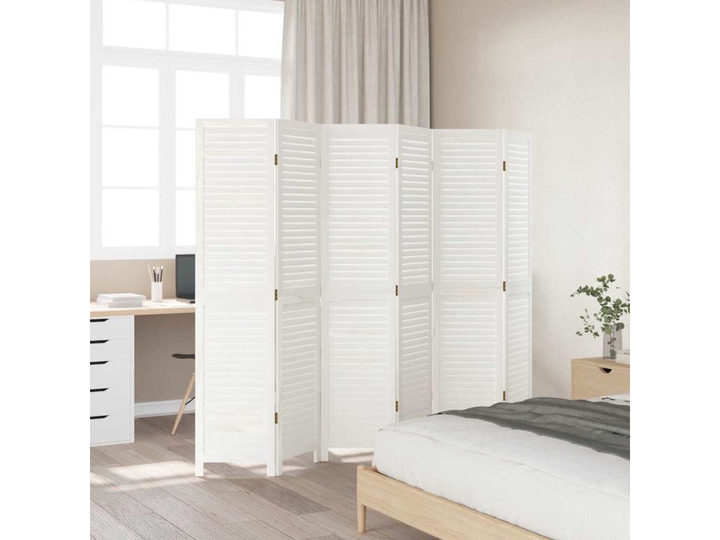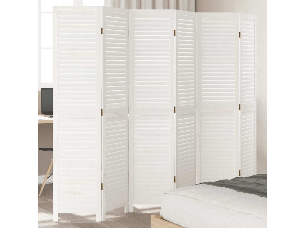 Paraván 6dílný bílý masivní dřevo pavlovnie [358842]