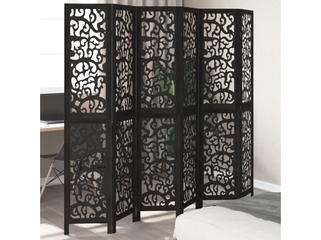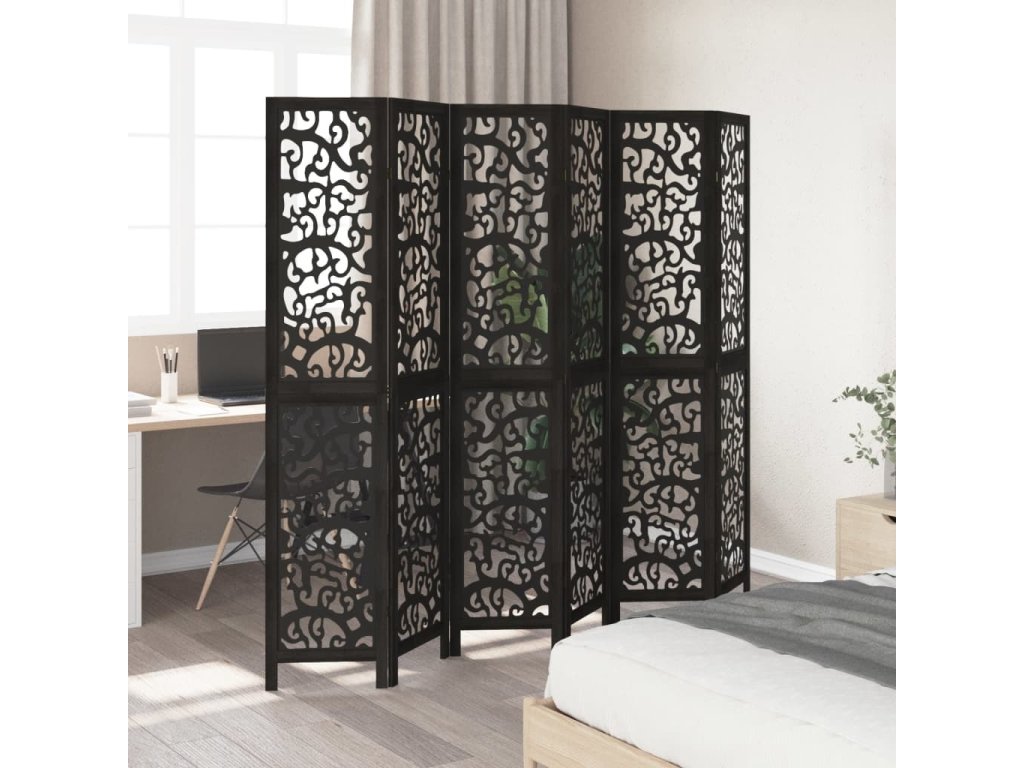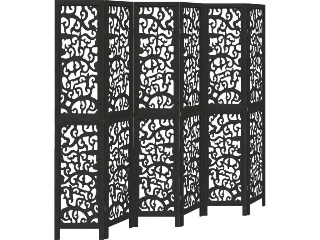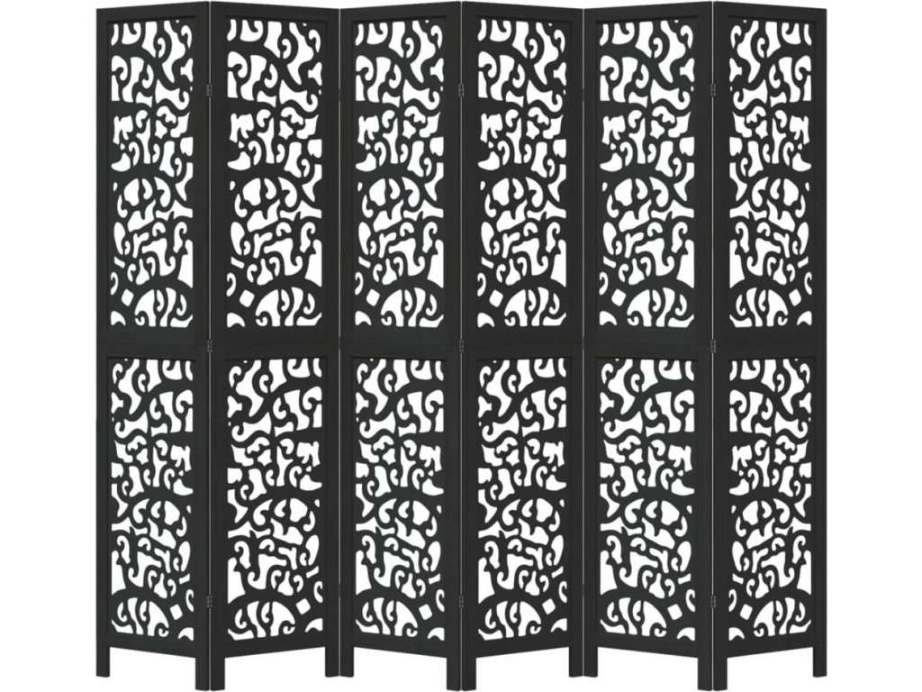 Paraván 6dílný černý masivní dřevo pavlovnie [358763]
