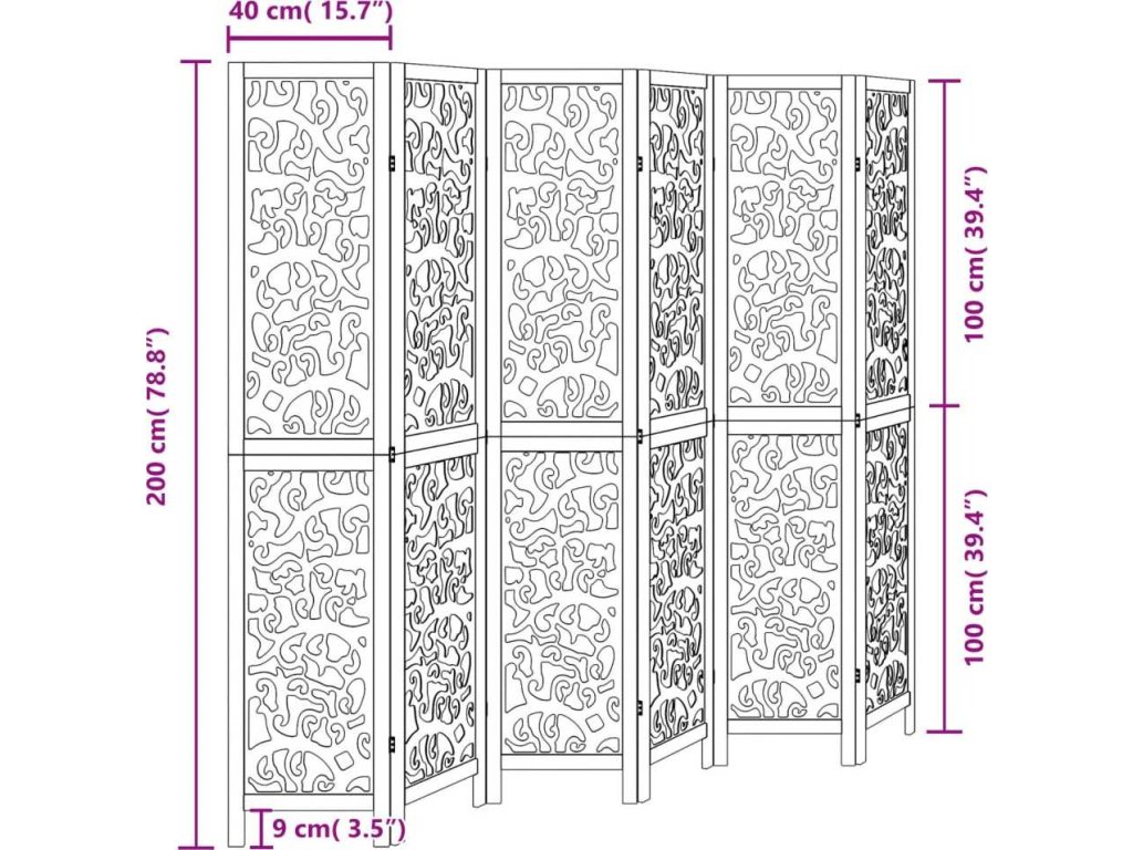 - Atraktivní vzhled: Tento skládací paraván s delikátním ažurovým vzhledem dodává prostoru charakter a dekoraci.