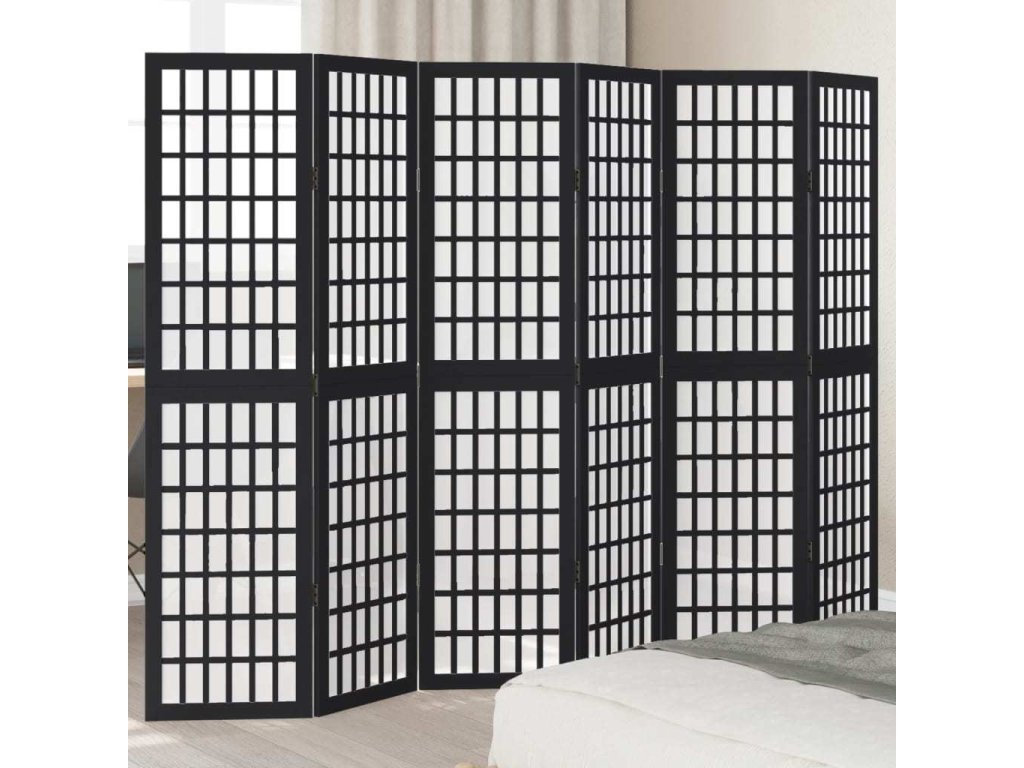 Paraván 6dílný černý masivní dřevo pavlovnie [358777]