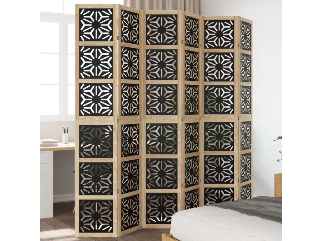 Paraván 6dílný hnědý a černý masivní dřevo pavlovnie [358812]