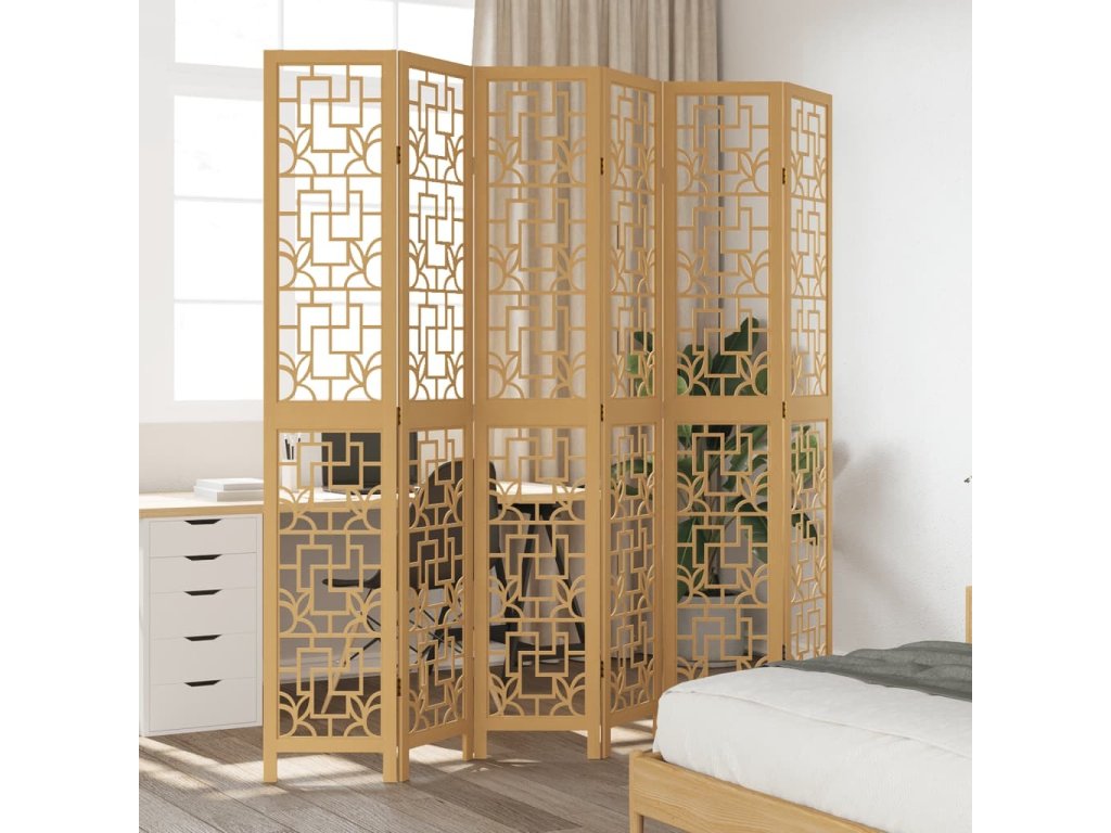 Paraván 6dílný hnědý masivní dřevo pavlovnie [358876]