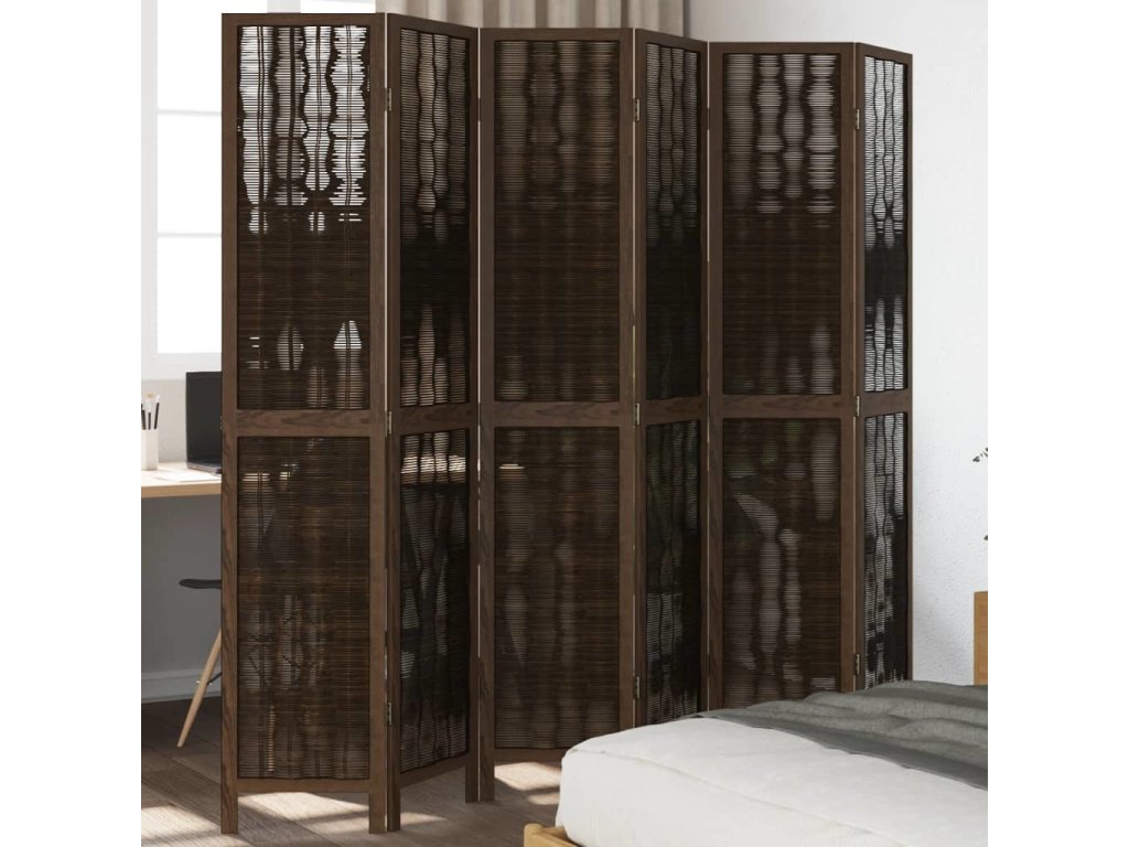 Paraván 6dílný tmavě hnědý masivní dřevo pavlovnie [358667]
