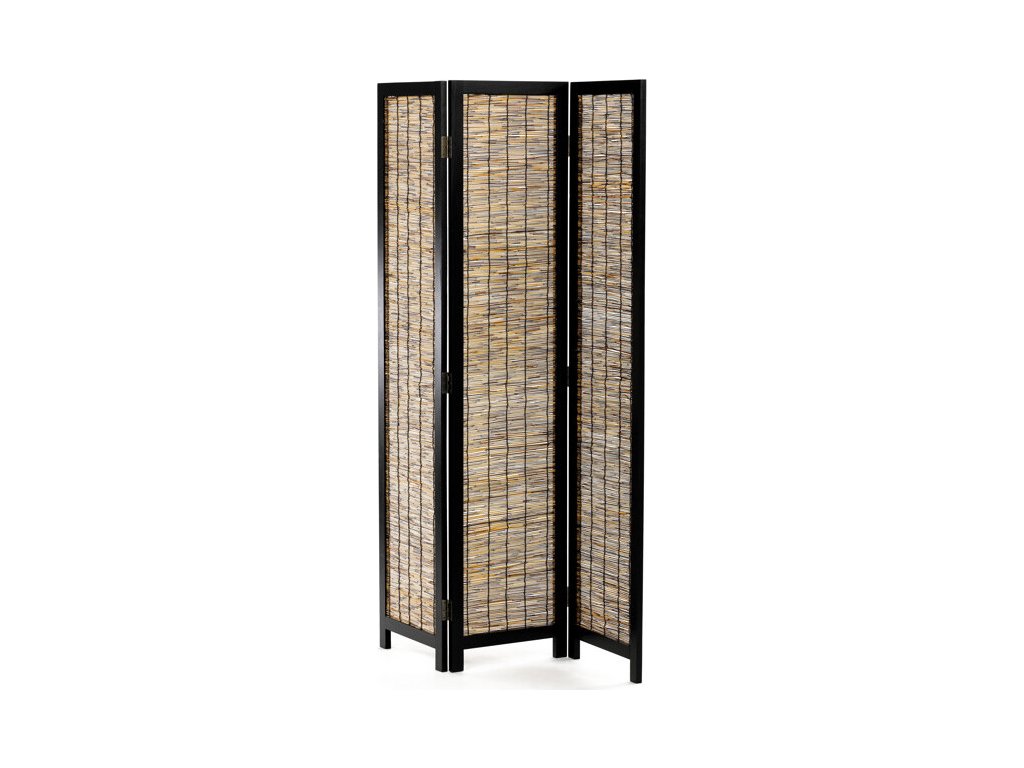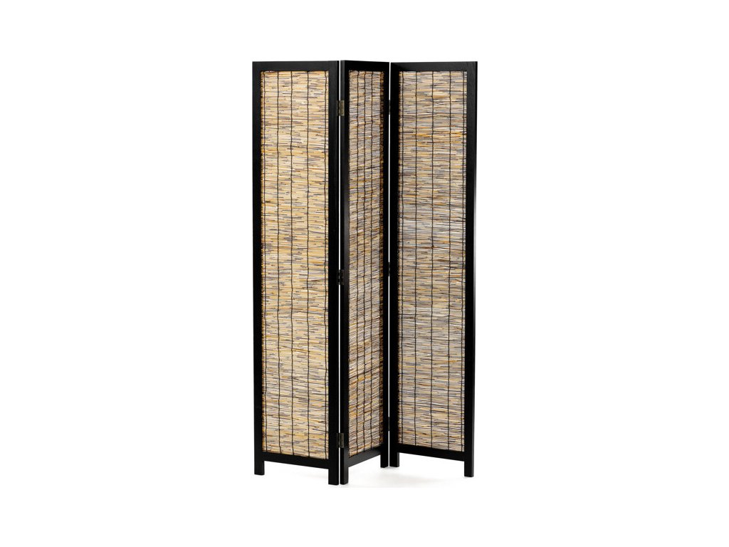 Třídílný paraván z masivního smrkového dřeva v černém provedení nabízí praktické řešení pro rozdělení prostoru či vytvoření soukromí v interiéru. Pevný rám je doplněn o výplň z tenkých smrkových lamel, které dodávají paravánu přírodní a zároveň moderní vzhled. Díky třem otočným dílům je možné paraván snadno přizpůsobit různým prostorovým podmínkám a uspořádáním. Povrchová úprava černým lakem chrání dřevo a zároveň podtrhuje jeho strukturu. Paraván je vhodný do obývacích pokojů, kanceláří nebo komerčních prostor, kde oceníte kombinaci funkčnosti a estetického provedení. Rozměr jednoho dílu je 40x171 cm.