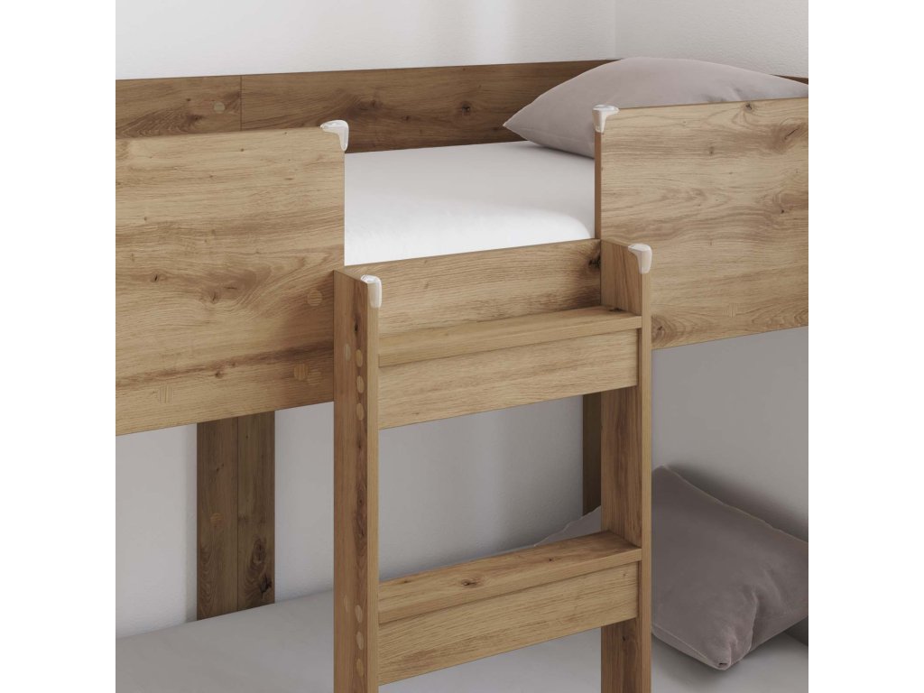 - Součásti v balení: Přichází jako kompletní balení, postel má dvě spací plochy a rámy ze silného inženýrského dřeva. To zajišťuje pevnost a stabilitu, takže je vhodná na dlouhý čas v jakémkoli pokoji. S designem jsme hodně dbali na bezpečí, takže děti budou spát v klidu.