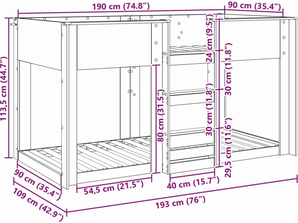 - Dřevěná konstrukce: Tato patrová postel z inženýrského dřeva spojuje pevnost a moderní styl, ideálně odolává aktivním dětem, přičemž si dlouho zachovává elegantní vzhled.