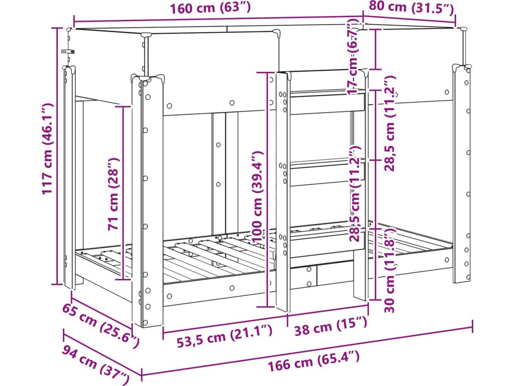 Patrová postel pro děti Černý dub 80 x 160 cm kompozitní dřevo [3410548]