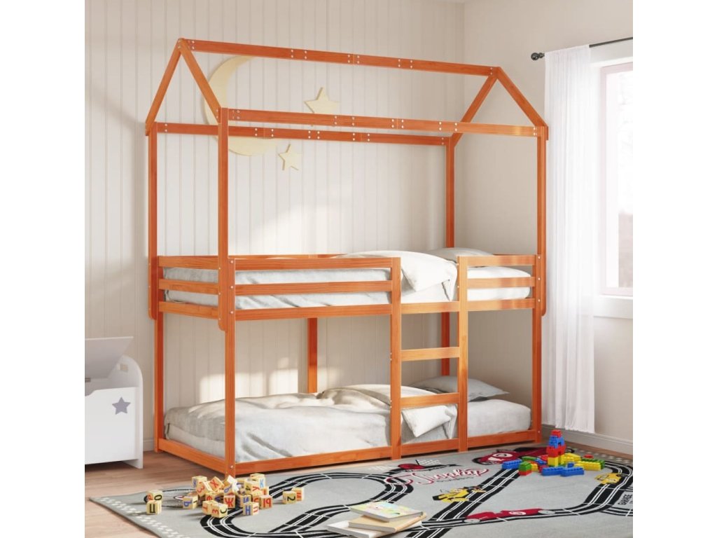 Patrová postel se střechou 90x200 cm masivní borové dřevo [3282118]