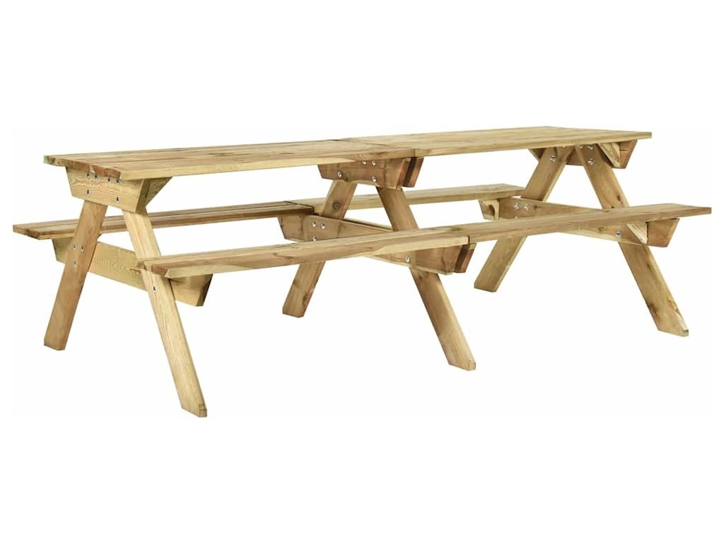 Tento piknikový stůl se skládá z 1 velké stolní desky a 2 pohodlných lavic. Zahradní piknikový stůl, vyrobený z impregnovaného borového dřeva, vyniká dlouhou životností a odolností vůči povětrnostním vlivům.