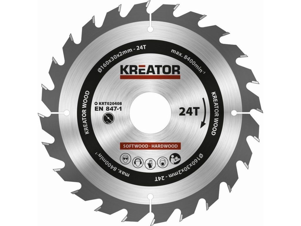 Pilový kotouč Kreator KRT020408 na dřevo 160mm, 24T [63605095]