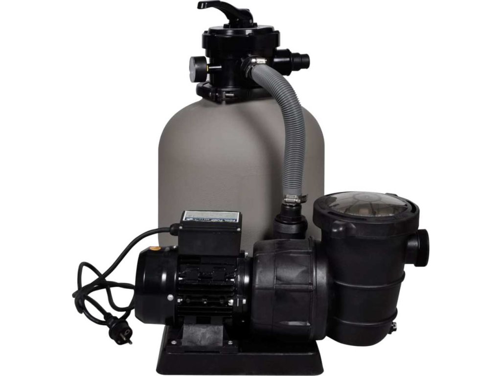 Pískový filtr dokáže přefiltrovat 11000 litrů za hodinu a je vybaven rezistentní a korozivzdornou filtrační nádrž, která je odolná vůči kyselému vlivu chlorované vody v bazénu. K dispozici je také předfiltr navíc, který chrání hrubý pískový filtr před znečištěním. Má vícecestný ventil pro snadné ovládání a snadno čitelný manometr. Konstrukce horní přírubové svorky umožňuje otáčení 360 stupňů pro snadnou instalaci. Pro bezpečné uchycení obsahuje tato sada upevnitelnou základnu.