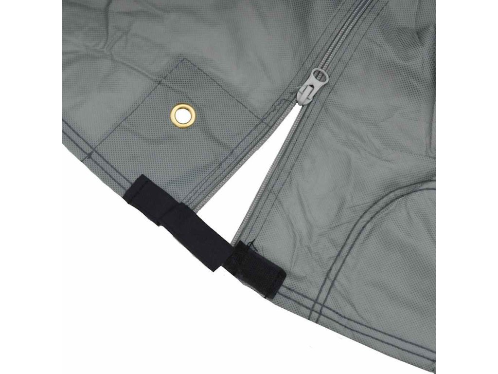 - Větruodolná konstrukce: Pružné lemy potahu zajišťují, že se dobře přizpůsobí vašemu vozu, zatímco nastavitelné popruhy s přezkami ve spodní části jej udrží na místě i ve větrných dnech. Kryt má také průchodky s lany a zapínání na suchý zip podél zipů pro bezpečné uchycení.