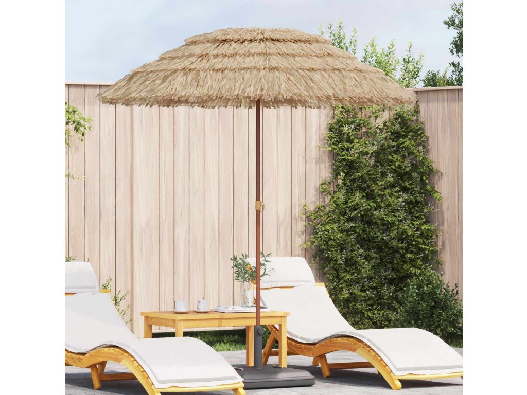 Tento moderní plážový slunečník je must-have pro všechny, co dávají přednost stylu a funkčnosti při pobytu venku. Funguje skvěle v zahradách i na plážích a spojuje přírodní atmosféru s praktickými výhodami. Díky unikátnímu tvaru se hodí do různých sezení a poskytuje vám dostatek stínu k relaxaci i na slunci. Jeho tropický styl a design dodávají každému letnímu prostoru živou atmosféru.