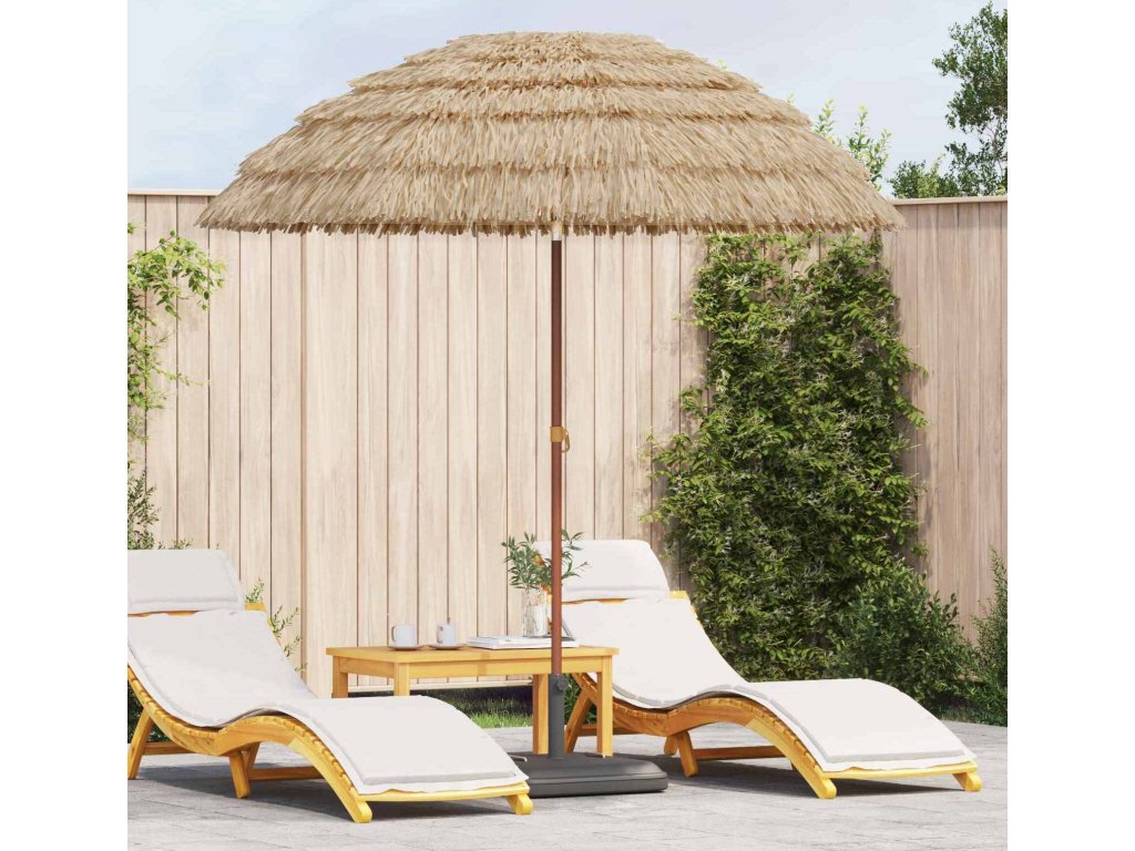Tento havajský slunečník přináší exotický šmrnc do vaší zahrady nebo na terasu. Je navržený tak, aby byl nejen krásný, ale i praktický. Se svou přirozenou barvou a tropickým stylem snadno pozvedne jakékoli prostředí a vytváří příjemné místo, kde si užijete jídlo s přáteli nebo si jen tak odpočinete chráněni před sluncem.
