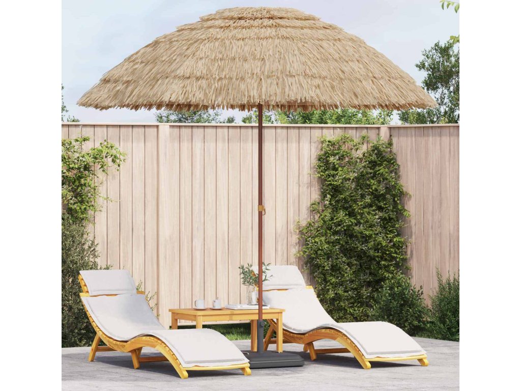 Tento havajský slunečník přináší exotický šmrnc do vaší zahrady nebo na terasu. Je navržený tak, aby byl nejen krásný, ale i praktický. Se svou přirozenou barvou a tropickým stylem snadno pozvedne jakékoli prostředí a vytváří příjemné místo, kde si užijete jídlo s přáteli nebo si jen tak odpočinete chráněni před sluncem.