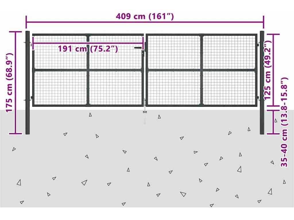 Zahradní branka je perfektně zpracovaná a vyrobená z pozinkované oceli s práškovým povrchem, který je odolný proti korozi a vytváří pevnou konstrukci. Má dva boční sloupky se šrouby k zavěšení pro snadnou instalaci. Je rovněž vybavena ukotvovacím kolíkem pro velký spodní šroub, který zajišťuje, že může být branka bezpečně uzamčena.