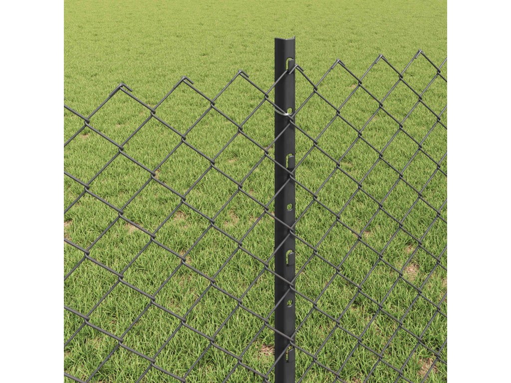 Plot s sloupkem Šedá 0,8 x 10 m Ocel a PVC [3336259]