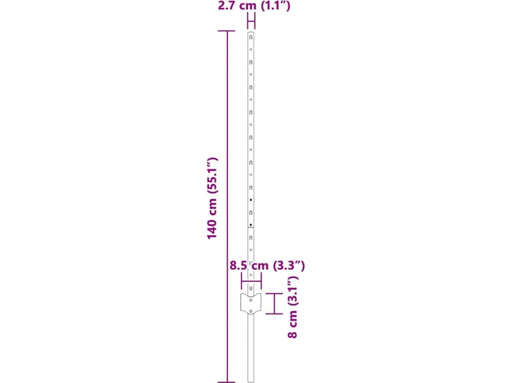 - Materiál: Vyrobený z oceli, tento sloupek zaručuje vysokou pevnost a odolnost. Materiál se postará o to, že odolá venkovním podmínkám a poskytne stabilní podporu oplocení. Jeho robustní konstrukce snižuje potřebu údržby a výměny.