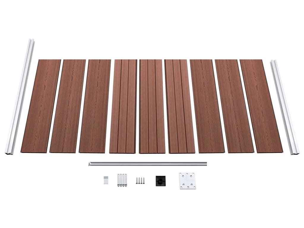 - Materiál: WPC (dřevoplastový kompozit), hliník, ocel