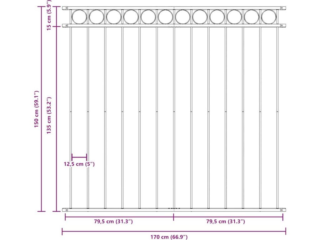 Náš plotový panel s jednoduchým, ale praktickým designem a kruhovým vrcholem se hodí do každé zahrady, na terasu nebo terasu. Tento panel je vyroben z pevné práškově lakované oceli a v kombinaci s plotovými sloupky (nejsou součástí dodávky) z něj činí robustní a odolnou přepážku pro vaši zahradu.