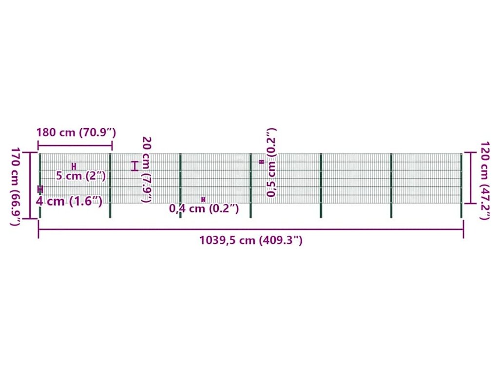 Plotový panel se sloupky železný 1040 x 120 cm zelený [278666]