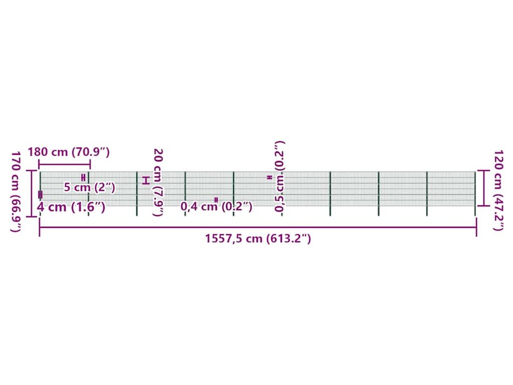 Plotový panel se sloupky železný 1557,5 x 120 cm zelený [278669]