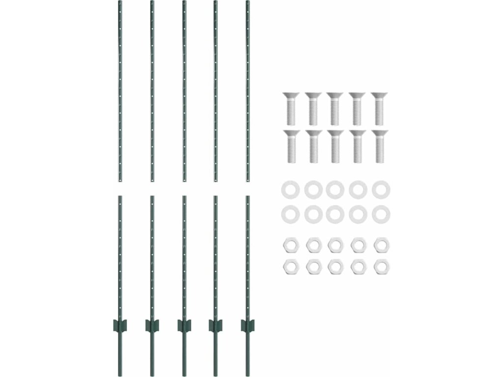 Plotový sloupek. 5 pcs Zelená 160 cm Ocel [42006272]